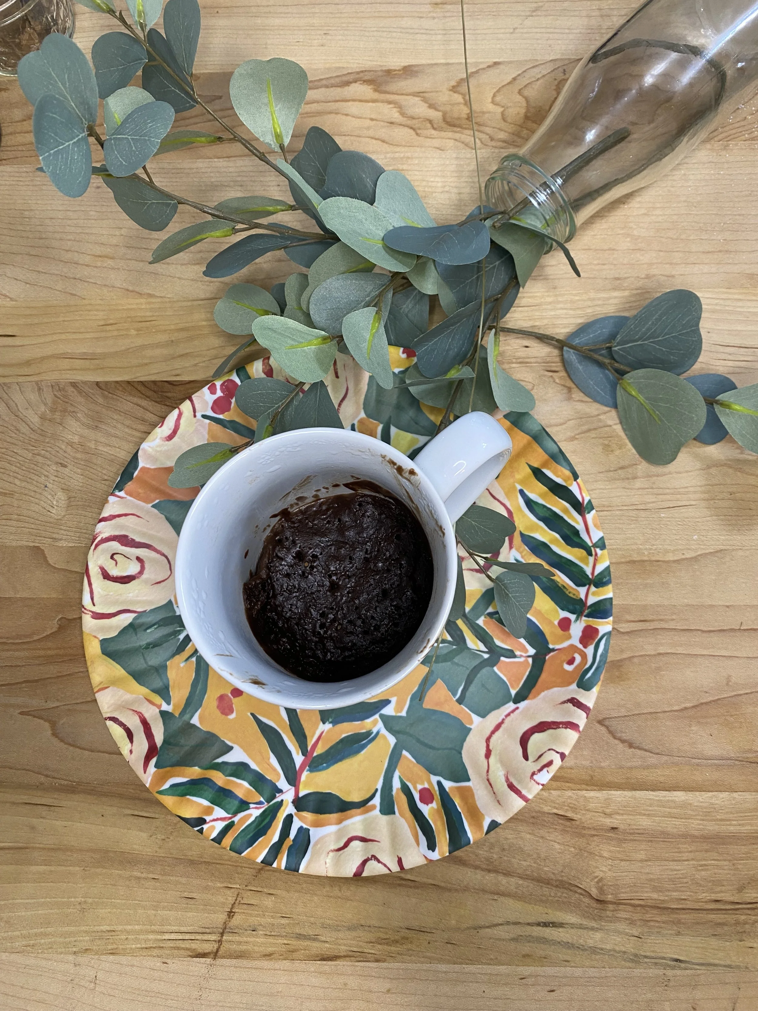 Dump the sugar, flour, and cocoa powder in the bottom of a mug. Whisk together. Add in the vegetable oil, almond milk, and vanilla. Stir until well combined. Cook in the microwave for 60 seconds. Add an additional 10 seconds as necessary until you no longer see any raw batter. Top with whatever you like and enjoy!