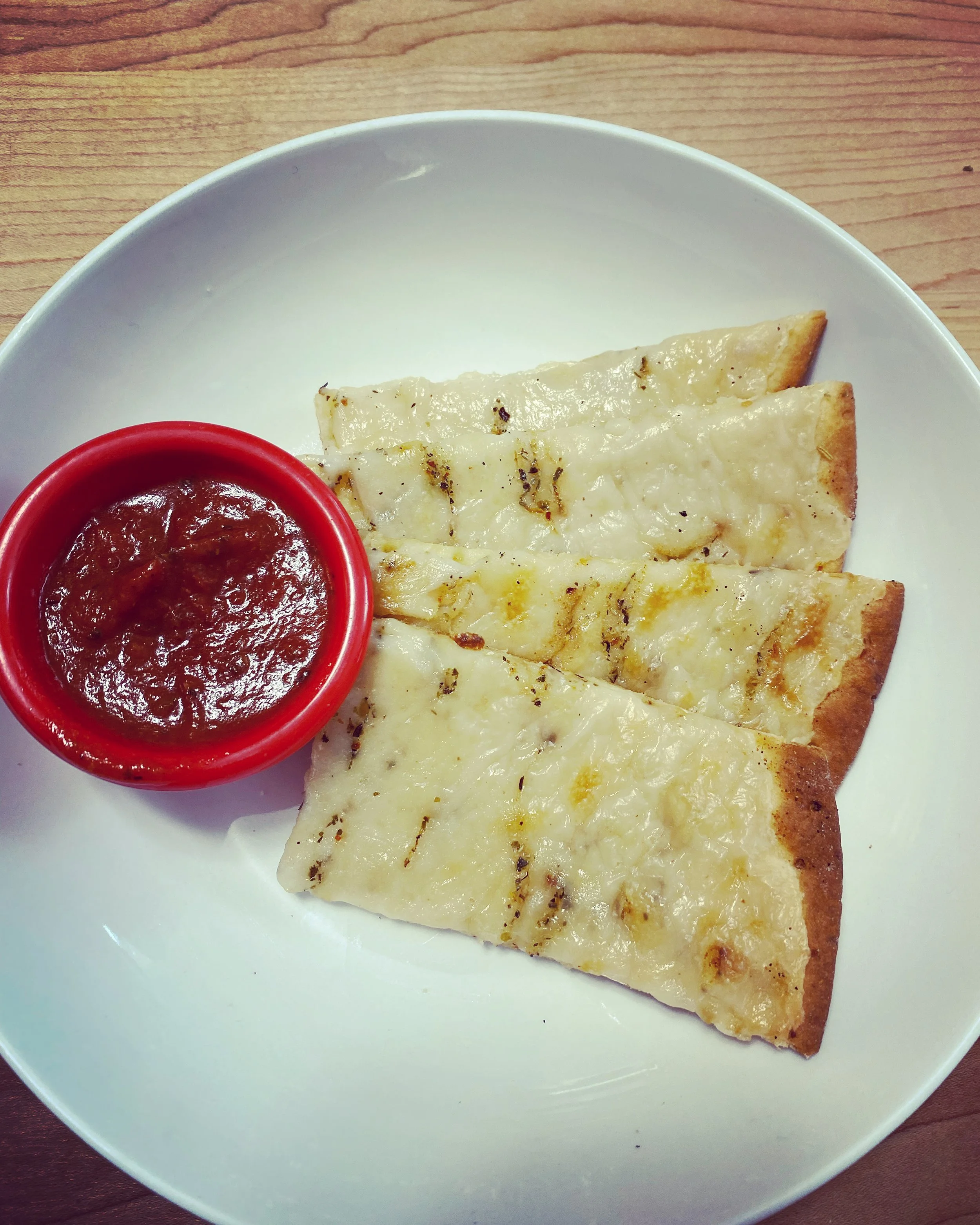 Preheat the oven to 450 degrees. Place the pizza crust on a baking tray. Spread the olive oil all over the crust. Shake the spices evenly over the crust. Add the cheese. Bake in the oven for 15 minutes. Put oven on broil for one to two minutes to make the cheese brown and bubbly. Take out of the oven and slice into stick shapes. Serve with marinara dipping sauce and dunk away.