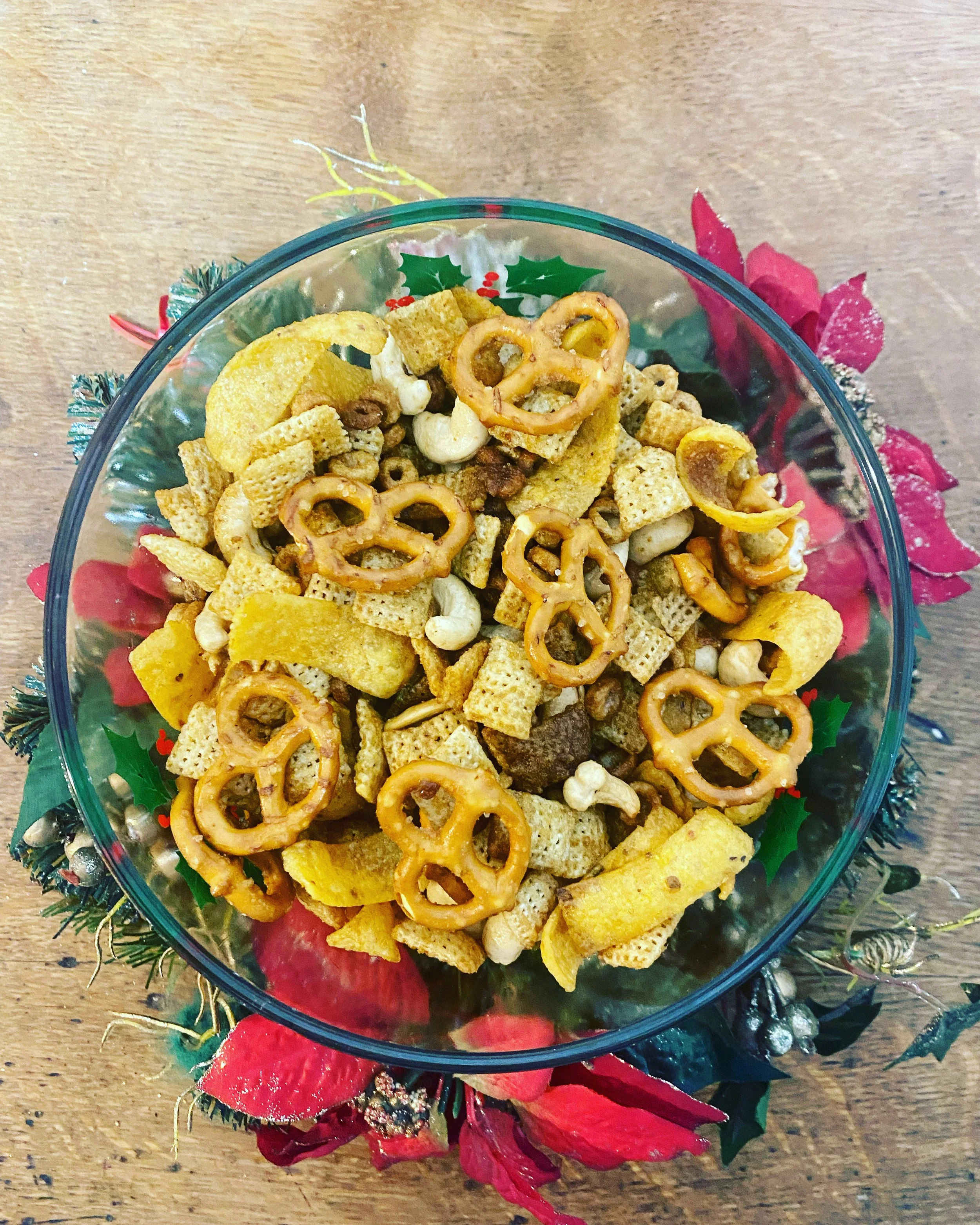*I used Snyder’s Gluten Free Pretzels, Cheerios, Fritos, Rice Chex, and Country Crock Plant Butter.*